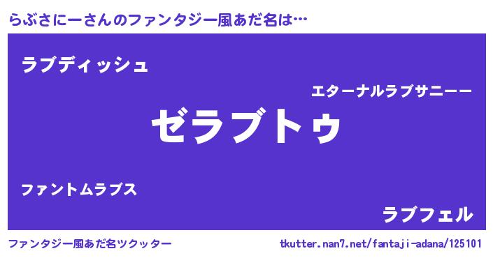 | 意味不明あだ名 | 『自称らぶさにー』『永久保存らぶさにー』 |