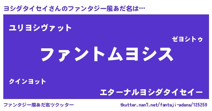 | 男性向けラノベタイトル風あだ名 | 『ヨシダタイセイの嫁は女の子じゃないと思った?』 |