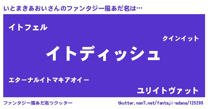 | ヘコむあだ名 | 『いとまきあおい(遠い目)』『いとっふぃ~』 |