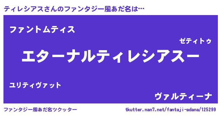 | 意味不明あだ名 | 『ティレシアスフォーエバー』 |