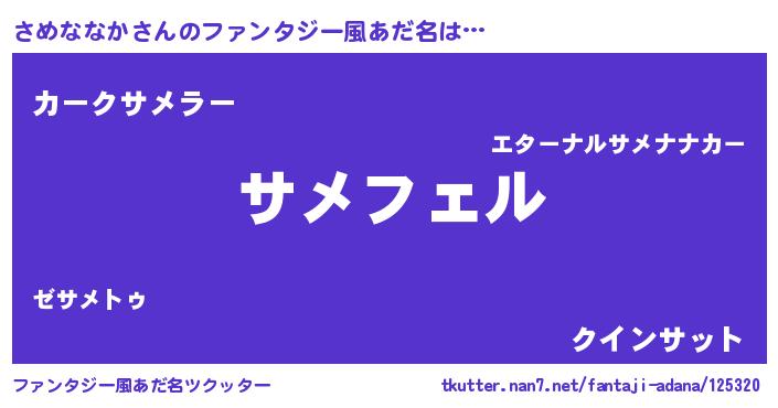 | 男性向けラノベタイトル風あだ名 | 『さめななかの憂鬱』 |