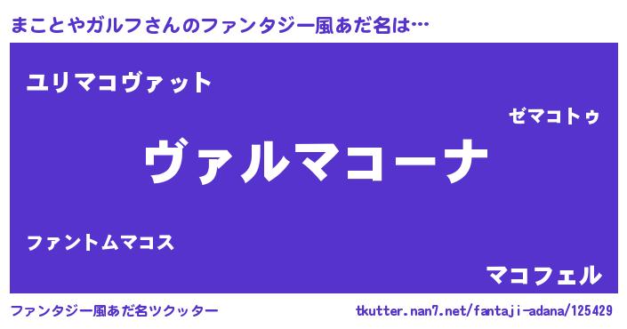| 男性向けラノベタイトル風あだ名 | 『魔弾の王とまことやガルフ』 |