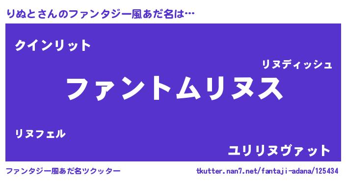 | 女子向けラノベタイトル風あだ名 | 『りぬとの卵を拾いまして』 |