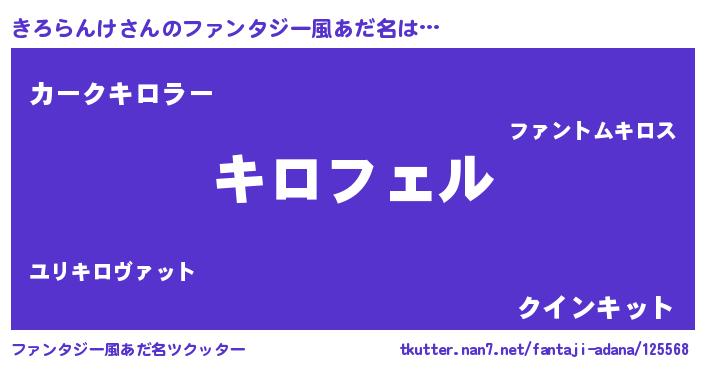 | 胡散臭い通販商品みたいなあだ名 | 『モテモテ間違いなしブレスレット…その名も「きろらんけ」』 |