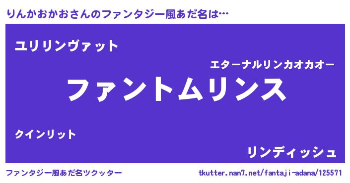 | 男性向けラノベタイトル風あだ名 | 『りんかおかおの嫁は女の子じゃないと思った?』 |