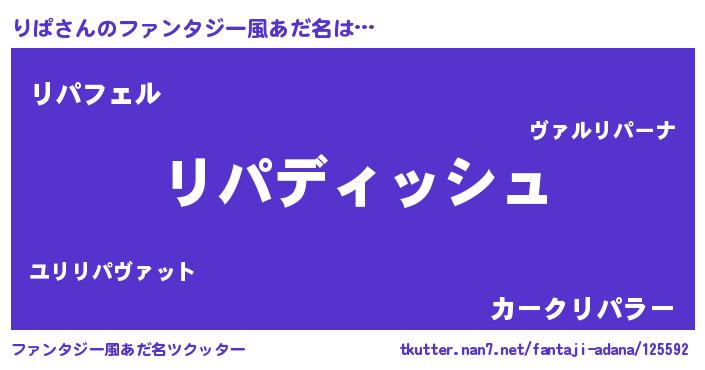 | ヘコむあだ名 | 『りぱ(遠い目)』『りぱにゅー』 |