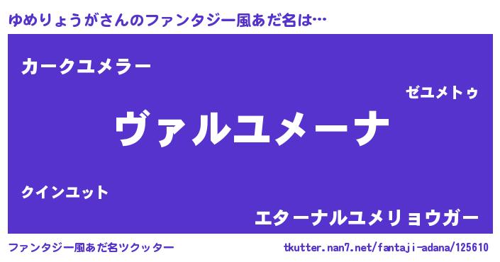 | 男性向けラノベタイトル風あだ名 | 『この素晴らしい世界にゆめりょうがを!』 |