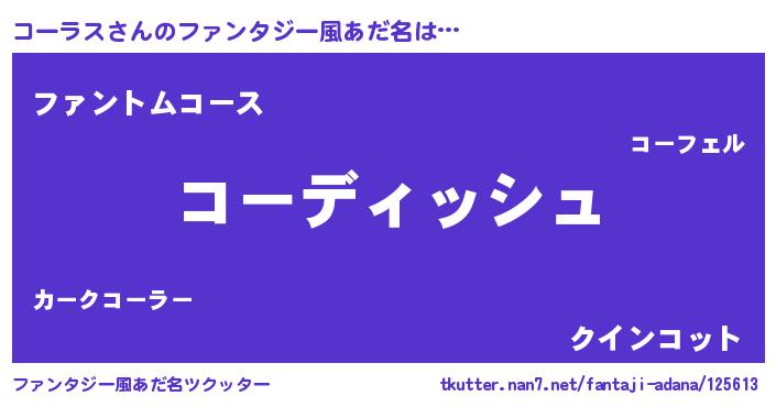 | ヒーロー風カッコイイあだ名 | 『ネオコーラス』『暗黒騎士コー』 |
