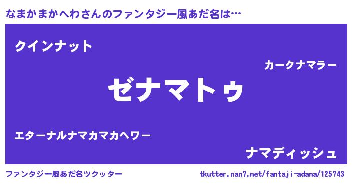 | 意味不明あだ名 | 『自称なまかまかへわ』 |