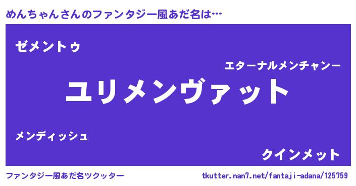 | 男性向けラノベタイトル風あだ名 | 『転生したらめんちゃんだった件』 |