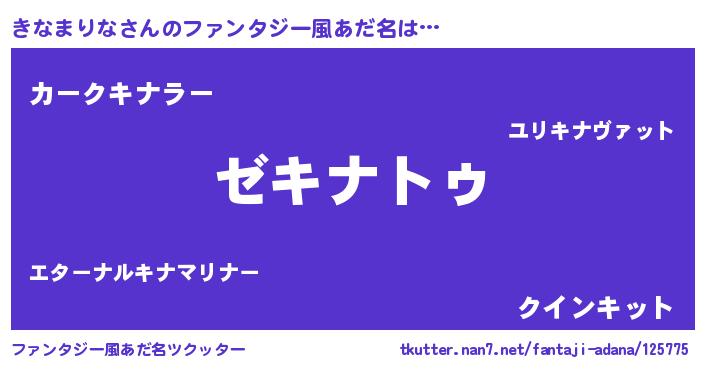 | ヒーロー風カッコイイあだ名 | 『超時空戦士キナマリナ』『幻影騎士キナ』 |