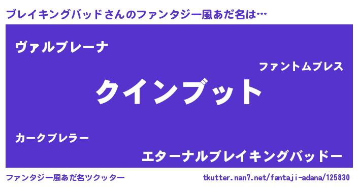 | 男性向けラノベタイトル風あだ名 | 『ノーゲーム・ノーブレイキングバッド』 |