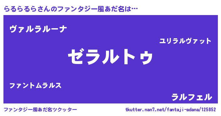 | ヘコむあだ名 | 『らるっふぃ~』『らるを』 |