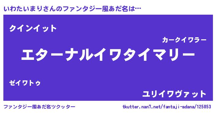 | 女子向けラノベタイトル風あだ名 | 『いわたいまりの雑貨屋さん』 |