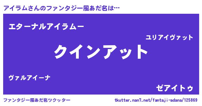 | 男性向けラノベタイトル風あだ名 | 『ノーゲーム・ノーアイラム』 |