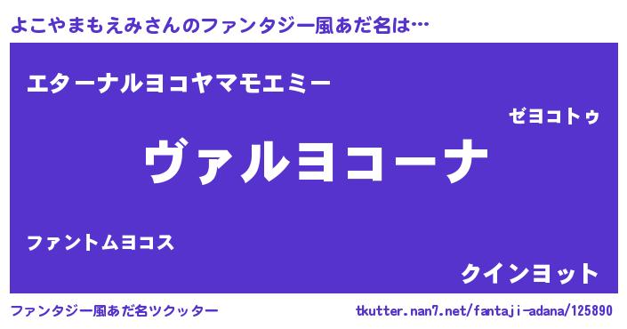 | 男性向けラノベタイトル風あだ名 | 『魔弾の王とよこやまもえみ』 |