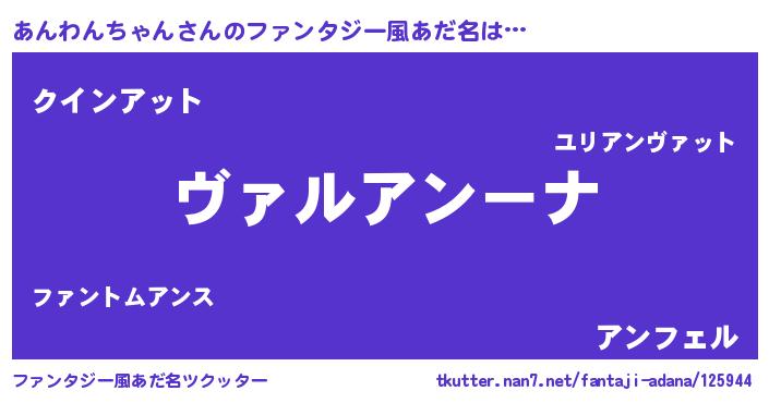 | 男性向けラノベタイトル風あだ名 | 『この素晴らしい世界にあんわんちゃんを!』 |