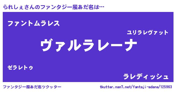 | 男性向けラノベタイトル風あだ名 | 『魔弾の王とられしぇ』 |