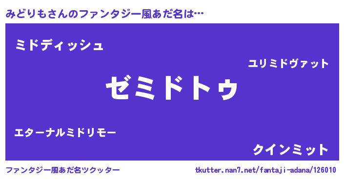 | 意味不明あだ名 | 『自称みどりも』『永久保存みどりも』 |