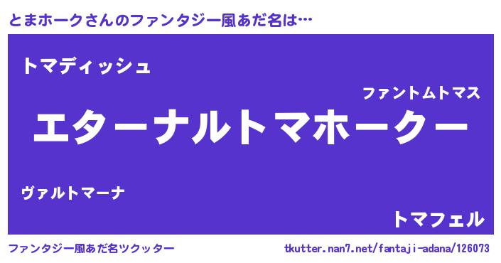 | 欧米人風あだ名 | 『とまホーククリステル』 |
