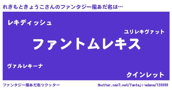 | ヘコむあだ名 | 『れきぷりん』『れきもときょうこ(遠い目)』 |
