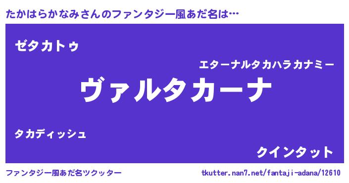 | 料理風あだ名 | 『たかはらかなみのカルパッチョ風』 |
