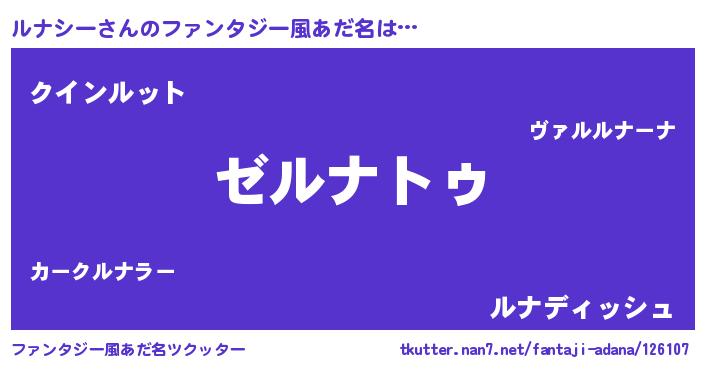 | 意味不明あだ名 | 『自称ルナシー』『永久保存ルナシー』 |