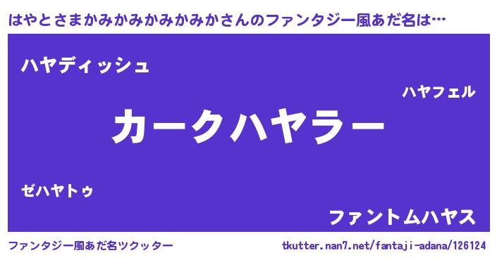 | 伝説のあだ名 | 『古文書に記された吟遊詩人はやとさまかみかみかみかみか』 |