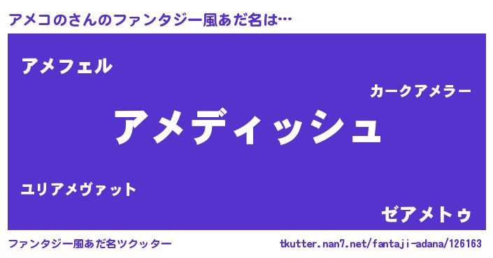 | ヘコむあだ名 | 『アメコの(震え声)』『アメふぇ~』 |