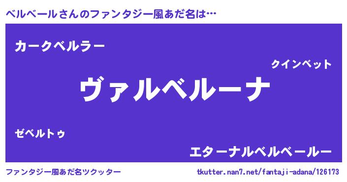 | 男性向けラノベタイトル風あだ名 | 『この素晴らしい世界にベルベールを!』 |