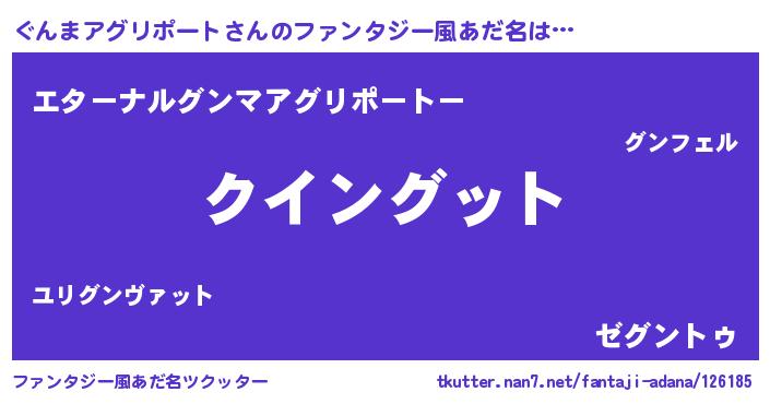 | ヒーロー風カッコイイあだ名 | 『慈愛の使者ぐんまアグリポート』 |