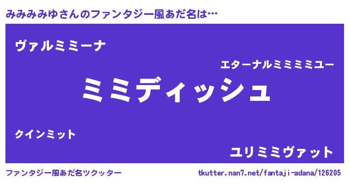 | 男性向けラノベタイトル風あだ名 | 『みみみみゆという概念が存在しない退屈な世界 』 |