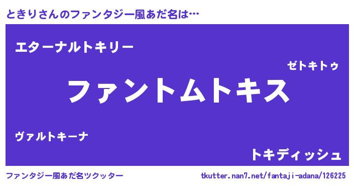 | 意味不明あだ名 | 『とにかく怪しいときり』『自称ときり』 |