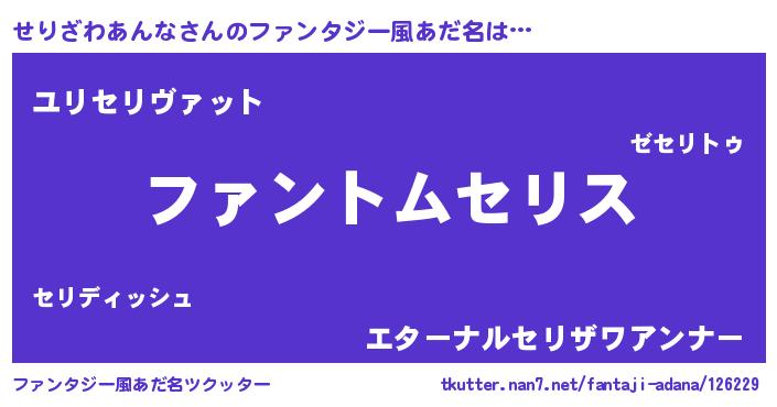 | 男性向けラノベタイトル風あだ名 | 『せりざわあんなの嫁は女の子じゃないと思った?』 |