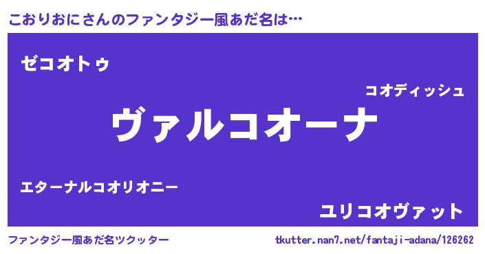 | 男性向けラノベタイトル風あだ名 | 『魔弾の王とこおりおに』 |