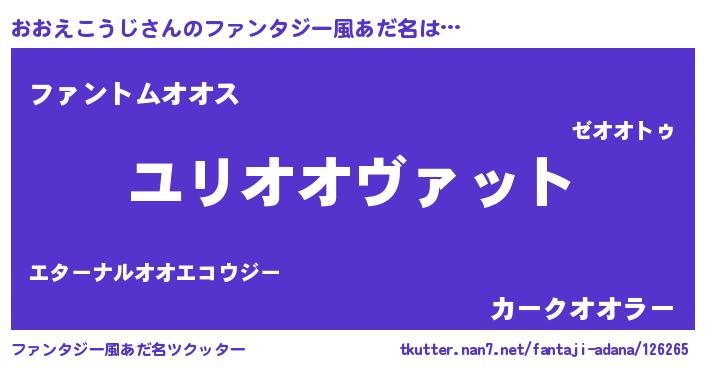 | 女子向けラノベタイトル風あだ名 | 『おおえこうじの玉の輿計画!』 |