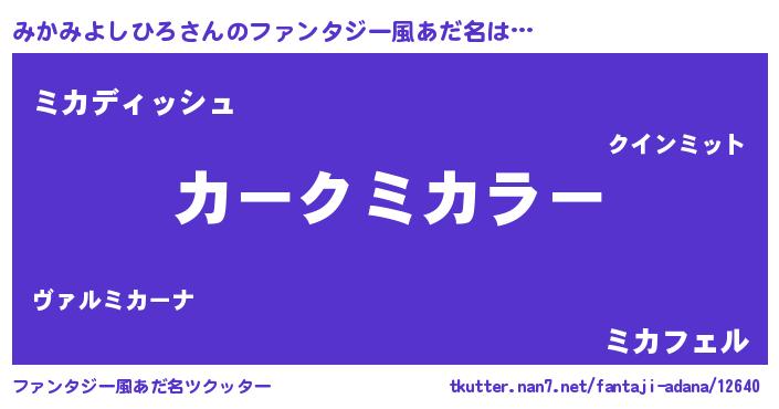 | ヘコむあだ名 | 『みかみよしひろ(震え声)』『みかもー』 |