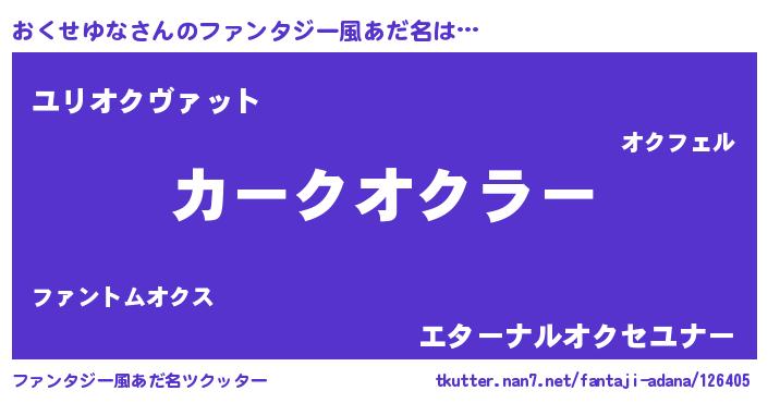 | 欧米人風あだ名 | 『おくせゆな・ステッグマイヤー』 |