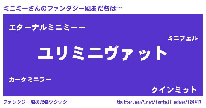 | 男性向けラノベタイトル風あだ名 | 『ミニミースレイヤー』『ミニミーの憂鬱』 |