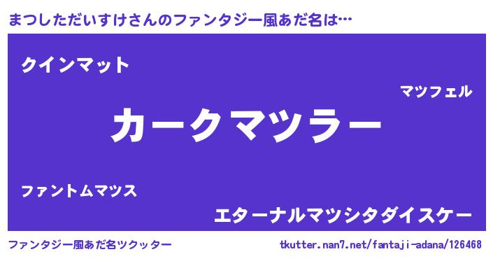 | 欧米人風あだ名 | 『まつしただいすけ・ステッグマイヤー』 |