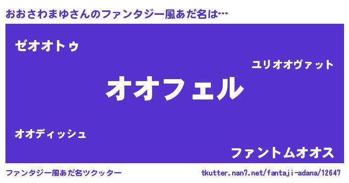 | 男性向けラノベタイトル風あだ名 | 『オオサワマユアートオンライン』 |