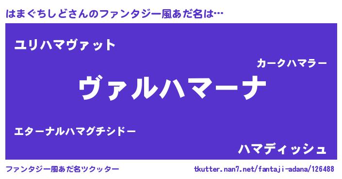 | 男性向けラノベタイトル風あだ名 | 『この素晴らしい世界にはまぐちしどを!』 |