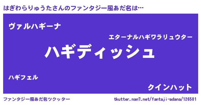 | 意味不明あだ名 | 『永久保存はぎわらりゅうた』 |