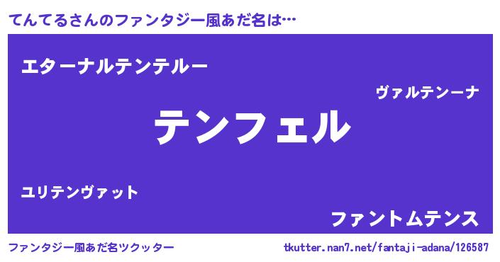 | 男性向けラノベタイトル風あだ名 | 『てんてるの憂鬱』『魔弾の王とてんてる』 |