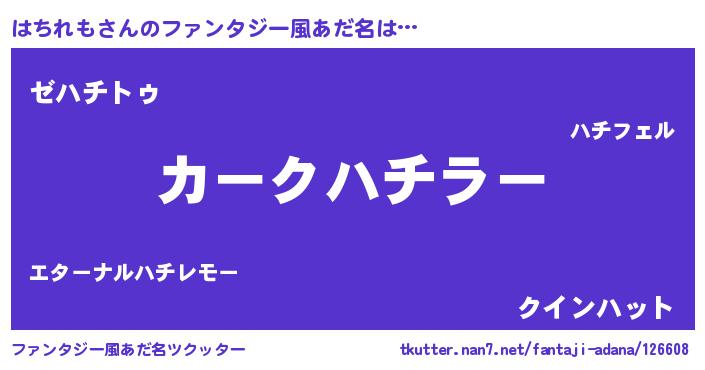 | 意味不明あだ名 | 『自称はちれも』『ペロリンはちれも』 |