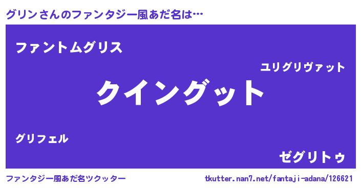 | 男性向けラノベタイトル風あだ名 | 『グリンに滅ぼされるだけの簡単なお仕事です』 |