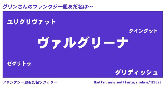 | 男性向けラノベタイトル風あだ名 | 『魔弾の王とグリン』 |