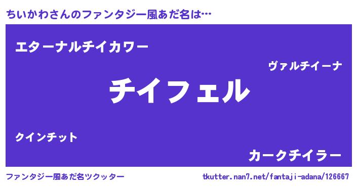| 恥ずかしいあだ名 | 『プリティーちいかわ』『ちいっちょ』 |
