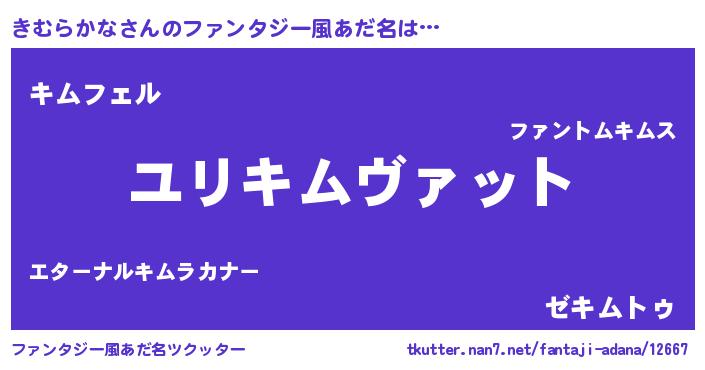 | 男性向けラノベタイトル風あだ名 | 『キムラカナスレイヤー』 |
