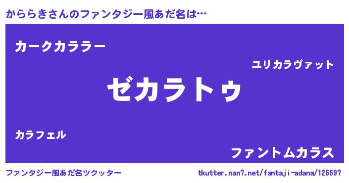 | 男性向けラノベタイトル風あだ名 | 『Re:かららきから始める異世界生活』 |